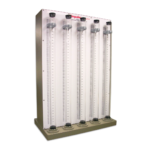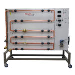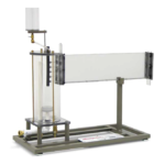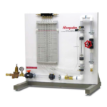 Flowmeter Demonstration Module consists of a base with leveler feet, venturi, flowmeter, orifice plate, needle valve, an eight tube manometer.