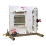 The Hampden Model H-6850-20 Double-pipe Heat Exchanger is used to investigate the fundamental principles of heat transfer as applied to a tube-in-tube heat exchanger. The apparatus permits the student to move from classroom theory to a hands-on application with all of the practical training. The student shall measure the variables that affect the overall heat transfer coefficient. The “cold” and “hot” fluid temperatures and flow rates are monitored at strategic locations. The unit can be configured to operate as either a parallel flow or counterflow heat exchanger. By varying the fluid flow rates, laminar, transitional or turbulent flow conditions can be created.