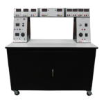 The Hampden Model HMD-100A-CM Deluxe Mobile Experimentation Station contains AC/DC power supplies, AC instrumentation, DC instrumentation, single-phase and three-phase wattmeter panel, work surface area, and locked storage compartment.
