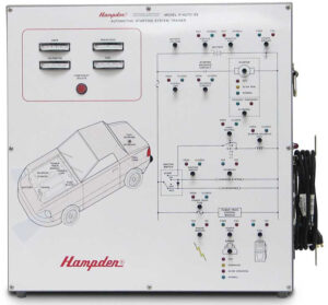 The Hampden Model H-AUTO-SS Digital Starting System Simulator provides training in the use of digital multimeters to pinpoint problems in automotive starting systems.