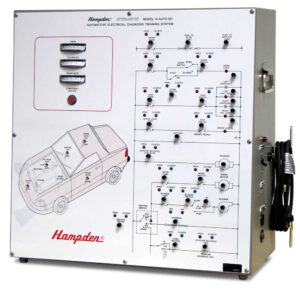 The Hampden Model H-AUTO-ED Digital Electrical Diagnosis Simulator emphasizes applying the basics of electricity to troubleshooting automotive electrical and electronic systems.