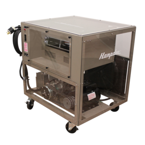 The Hampden Model H-AACT Series Automotive Air Conditioning Systems use an electric motor to drive the compressor. The unit also includes a condenser and fan, a filter/drier, a DC power supply, and AC controls. The Hampden Model H-AACT-3P (After Market) is the same as H-AACT-3A except pallet-mounted.