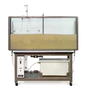 The Hampden Model H-6510 Drainage and Seepage Tank Demonstrator has been developed to investigate water flow through permeable media. Using sand as the medium and two-dimensional models, flow lines can be determined as well as the distribution of up-lift pressure and seepage rates.