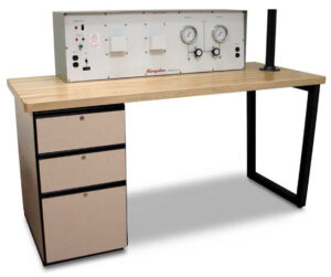 The Hampden Model H-6485-10 Instrumentation and Calibration Console consists of an instrumentation module and a work center (bench).