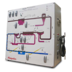 The Hampden Model H-DACH-CSI Digital Absorption Chiller/Heater Simulator demonstrates the principles of operation, controls, safety and interlocking controls and troubleshooting using Aqueous Lithium bromide as the absorbent. Hampden H-LTCS Laptop Computer System is included.