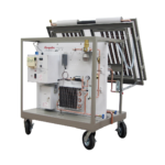 The Hampden Model H-SST-4 Solar Heat System Trainer is an actual solar hot water heating system. System components include one (1) traditional style solar collector and one (1) vacuum tube solar collector, circulation pumps, storage tank, heat exchanger, air separator, air handler, solar heating coil, automatic air vents, thermostat, and a control panel with sensors.