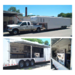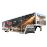 The Hampden 52 foot Gooseneck Live Welding Trailer comes complete with eight welding booths, fume extraction system, gas manifold system, air compressor, and 277/480VAC 3-phase electrical power included in the system.