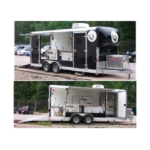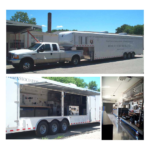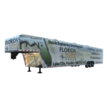The Hampden 44 foot Gooseneck Trailer comes complete with air conditioning and electrical power included in the system. Other options are generator system to run air conditioning and electrical power, recharge capability through direct plug of power source, 120/240, 50 Amp. Trailer is to include graphics and logos on side of trailers. The trailer also includes two side mounted doors that raise up to allow for open classroom environment as well as two side access doors and one large transportation door in back for removing and moving in equipment. The trailer is a triple axle trailer, loaded weight 22,000 lbs.