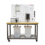 The Hampden Model H-PUMPT-10 Pumps Trainer demonstrates the setup and use of water pumps.