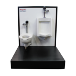 The Hampden Model H-CRPT-4 Commercial Restroom Plumbing Trainer demonstrates the setup and use of a toilet and urinal.