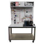 The Hampden Model H-RST-17 Heat Pump Trainer will allow the student to study the thermodynamic cycle of the typical heat pump. This system supplies either heating or cooling for a separate closed circuit air handler.