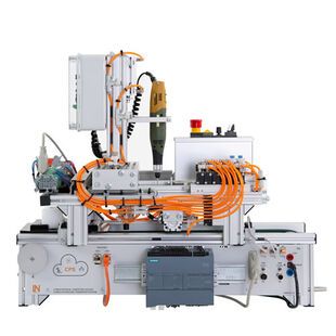 A workpiece carrier with the bottom part of a workpiece is placed on the conveyor belt. The drilling and cutting station has a controllable cutting head which reams out the internal contour of the workpiece section. The cutting head can be moved in three axes in order to work on the component. Afterwards the workpiece carrier with its workpiece is moved to the end of the conveyor belt to be passed on to the next sub-system.