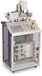 A workpiece carrier with the bottom part of a workpiece is placed on the conveyor belt. The drilling and cutting station has a controllable cutting head which reams out the internal contour of the workpiece section. The cutting head can be moved in three axes in order to work on the component. Afterwards the workpiece carrier with its workpiece is moved to the end of the conveyor belt to be passed on to the next sub-system.