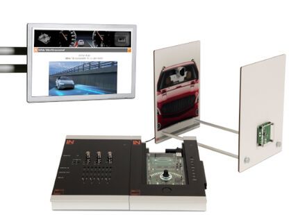 The lane departure warning system uses the front camera to monitor the vehicle’s own lane and issues a warning if the vehicle threatens to leave the lane unintentionally. An extension is the active lane assist, which not only issues a warning, but also generates an active counter-steering torque to drive the vehicle back into the centre of the lane. Both variants are part of this training system.