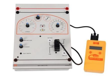 This trainer demonstrates how to read out emission data with the help of the onboard diagnosis unit (OBD II or EOBD), interpret the data and use the results as a basis for eliminating systemic faults. Students have the possibility to adjust various parameters on their own to see how these settings affect the tester. They also have the opportunity to tap the CAN transmission signal to display it on the oscilloscope.