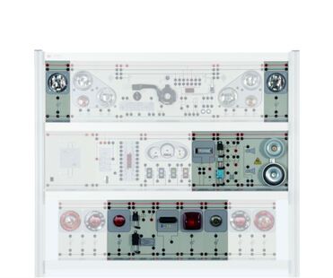 This system is used to cover the topics involving auxiliary headlights and signalling systems – the latter is obligatory in every vehicle and thus enjoys special consideration in training programs. What is of interest here is that control of these components can vary depending on the vehicle. For that reason, instructors can only profit from a system that allows them to become familiar with different versions of these right there in the classroom.