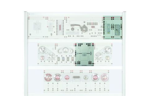 Expand any of the existing automotive lighting displays by a CAN bus node that is diagnostics capable. This novel concept permits operation in low-speed mode and, with just the push of a button, in high-speed mode, too. As a result, even without a CAN bus drive you can explore the basics of the different transmission speeds and the voltage levels associated with them. With the fault simulator you only have to activate a switch to feed various ISO standard fault codes onto the CAN bus.