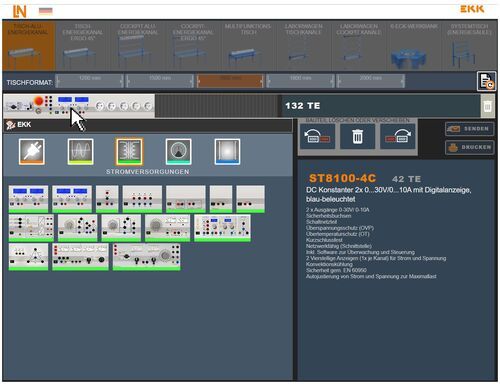The EKK power outlet configuration program also allows the chosen configuration to be printed out and for the data to be transmitted to the sales team at Lucas-Nülle GmbH, who will then be happy to offer you a non-binding estimate on the basis of it.