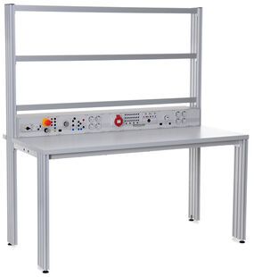 Natural brushed aluminium profile rails with attachment to accommodate training panels matching DIN A4 height. Inward facing brush rails ensure that plug connections can be interchanged with little noise during experiments.