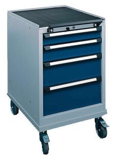 The robust steel-plate design and smooth rolling rubber casters ensure smooth procedures in the workshop. A central lock and push button for unlocking ensures that only one drawer can be opened at a time. This ensures the assembly trolley is not at risk of tipping over.