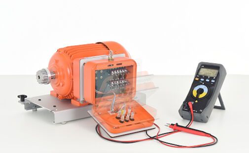 The fault simulator can be simply plugged into a three-phase asynchronous machine. Thanks to the lockable fault switches, a wide variety of typical faults can be activated. These can be found and analyzed using measuring equipment routinely found in industrial applications. Repair strategies can be derived based on the measurement results. All measurements are undertaken with the equipment de-energized.