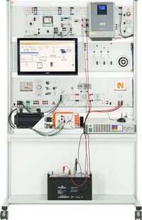 This training system enables realistic simulation of the course of the sun. This means that, even in the absence of the sun, experiments can still be carried out, just as things are done in practice, with the help of emulators. The assembly of photovoltaic PV hybrid systems operating in island grid and in grid parallel operation is explored in realistic fashion. A variety of operating modes are studied and as is the expansion to a microgrid to boost power supply dependability.